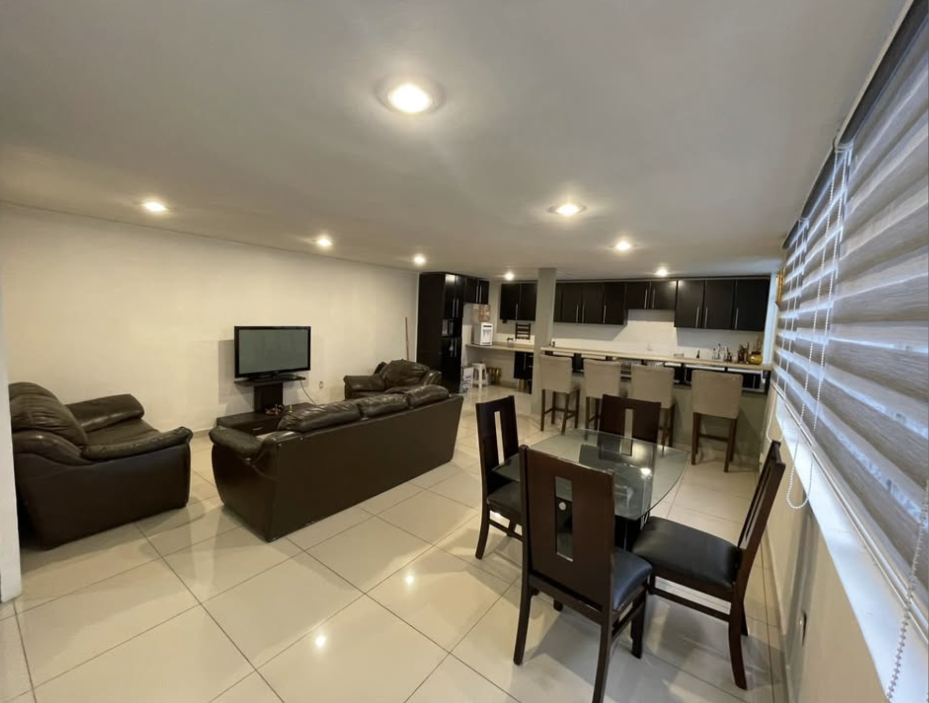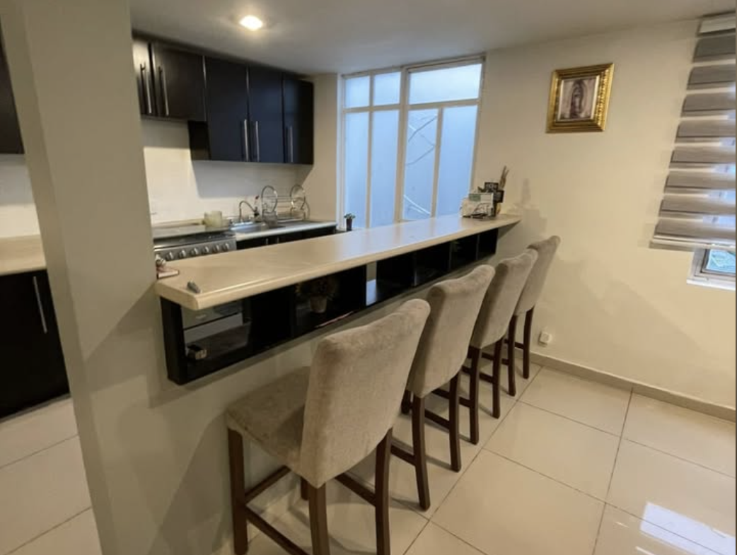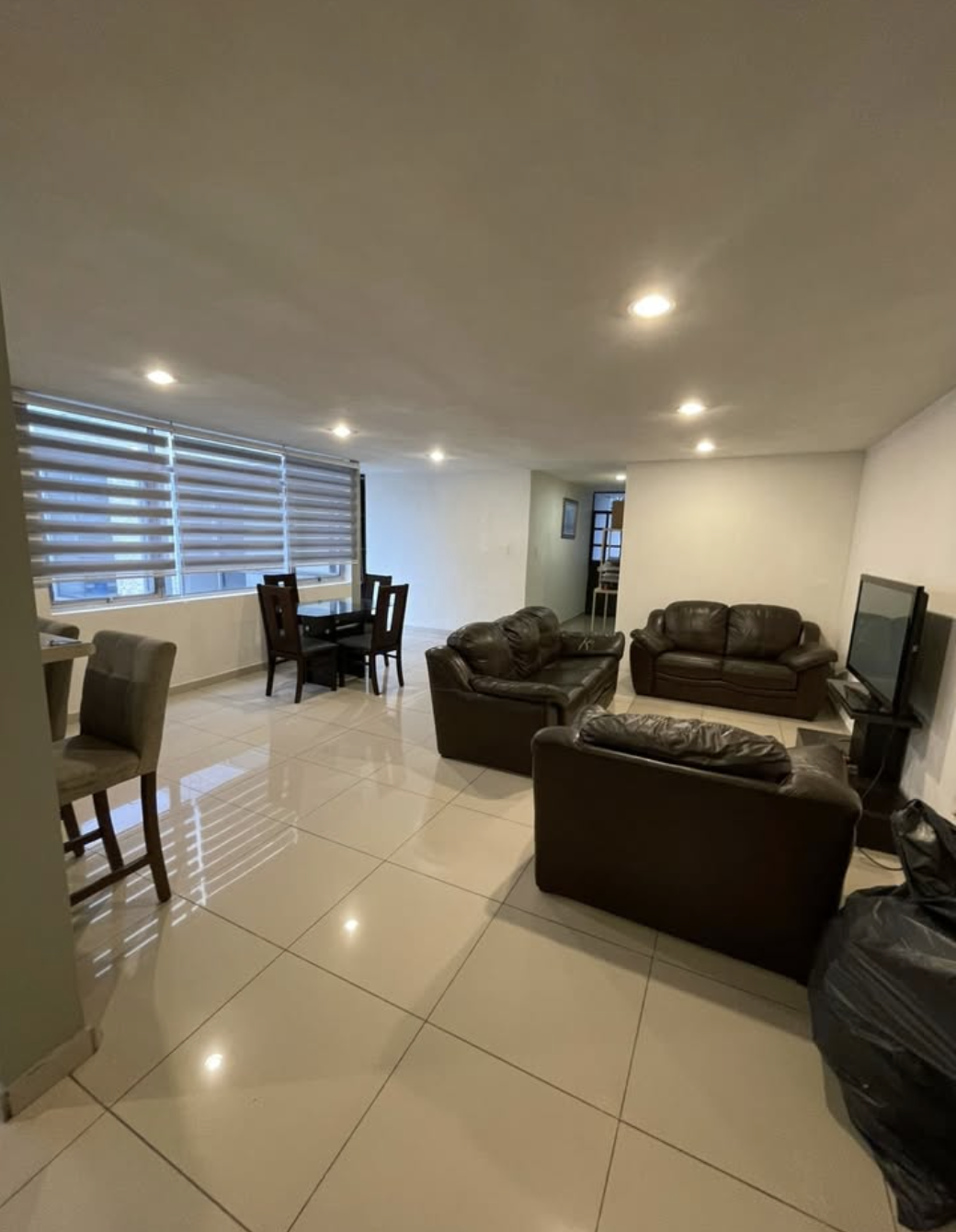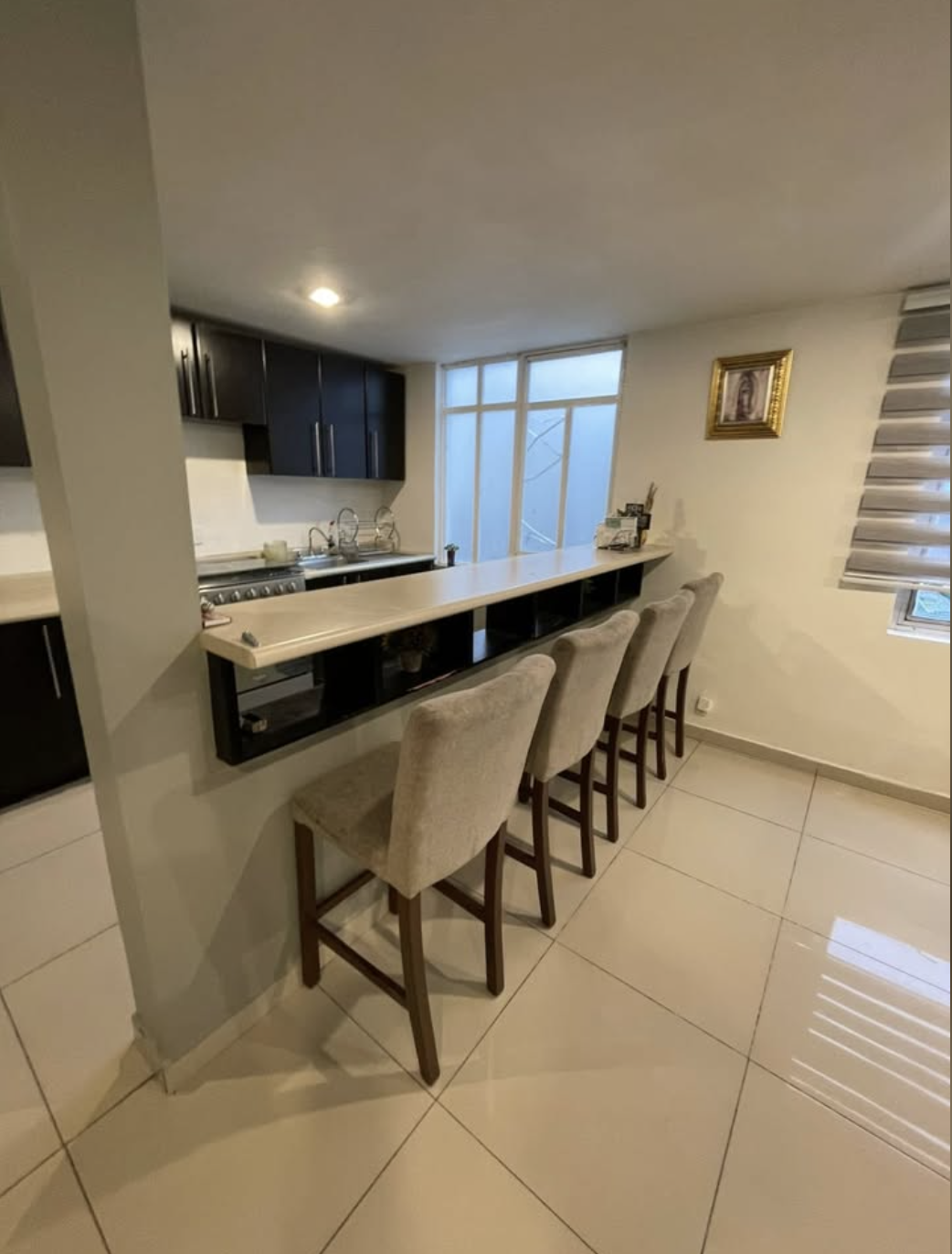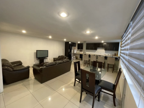 דירה להשכרה עם תאורה טבעית מצוינת, חללים מרווחים ותכנון פונקציונלי. כוללת סלון ופינת אוכל גדולים, מטבח פתוח ומאובזר עם בר, 2 חדרי שינה, חדר רחצה מלא ושירותי אורחים נוספים.